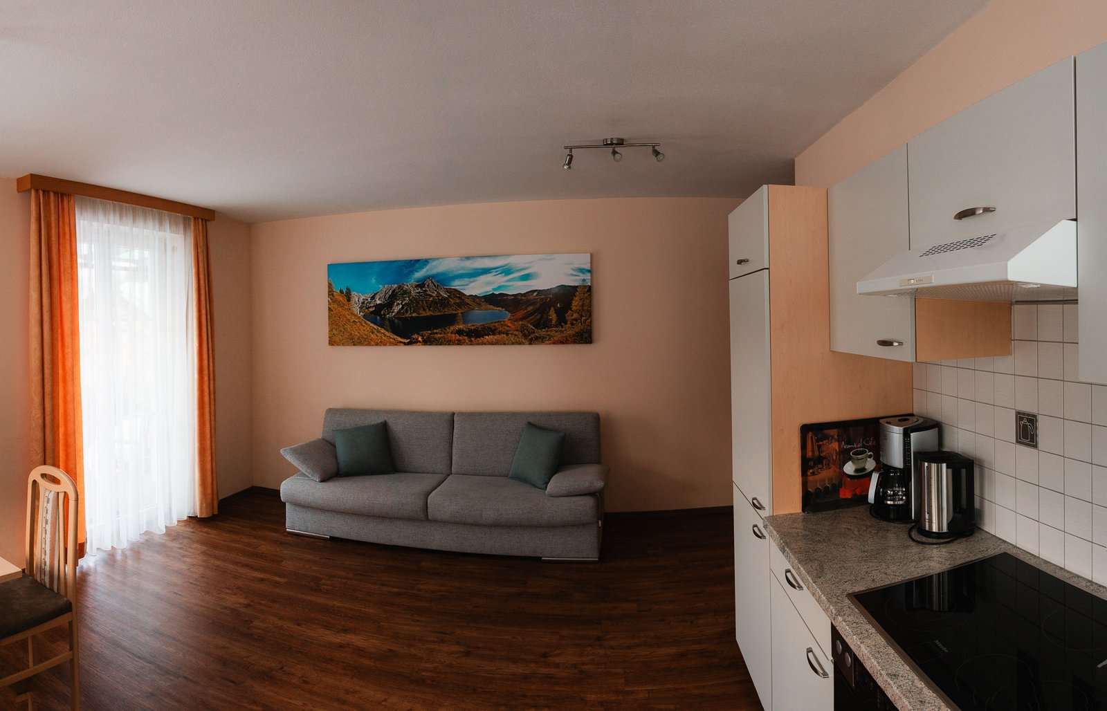 Fühlen Sie sich herzlich Willkommen in unserem wunderschönen Appartement für die ganze Familie mit zwei getrennten Schlafzimmern, einem Badezimmer und einem getrennten WC. Zusätzlich können Sie sich in der großen Wohnküche wie zuhause fühlen. Durch die ausziehbare Couch kann eine weitere Schlafmöglichkeit geschaffen werden. Mit der gemütlichen Sitzecke, einem Geschirrspüler, einem Kabel-TV, einer Kaffeemaschen sowie einem Kühlschrank mit kleinem Gefrierfach steht einem Familienurlaub nichts mehr im Wege.